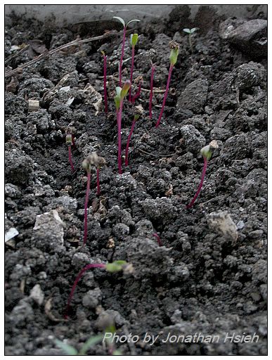 第一階段的甜菜苗 受到另一箱嚴重的蟲害攻擊 發芽以後